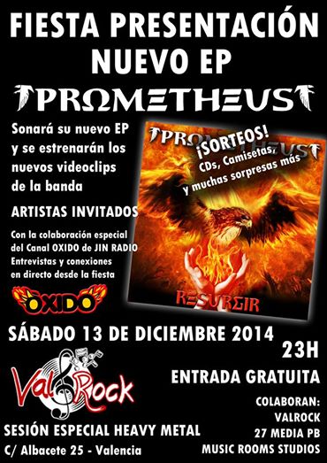 Mañana Sábado 13 de Diciembre tendrá lugar la fiesta de presentación de «Resurgir»el nuevo Ep de la banda de Valencia Prometheus en el Pub ValRock de Valencia (C/ Albacete 25).