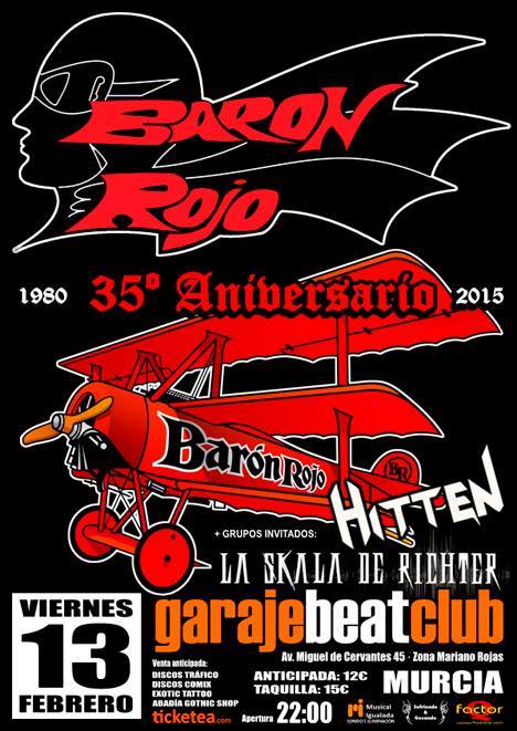 El 13 de Febrero les tendremos en la sala Garaje Beat Club teloneando a los Miticos Baron Rojo en su 35 Aniversario ., junto a Hitten .