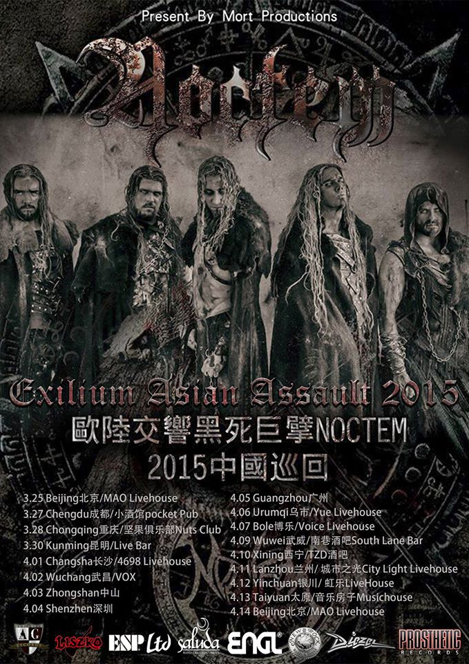 Tras recibir una gran respuesta por parte de sus seguidoresy la prensa internacional ….realizar 3 giras Europeas presentando su último trabajo«Exilium»NoctemSe enorgullece en anunciar que se embarcarán en una gira Asiática !!!!Como cabezas de cartel en Marzo y Abril de 2015Las fechas que componen la gira «Exilium Asian Assault 2015» son las siguientes:3.25 – Beijing / MAO Livehouse
