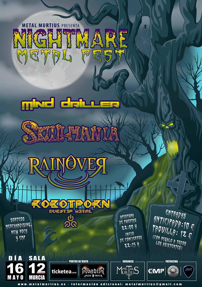 Es todo un placer para el equipo de Metal Murtius invitaros al NIGHTMARE METAL FEST, el cual contará con las actuaciones de MIND DRILLER, SKULLMANIA, RAINOVER y ROBOT PORN.