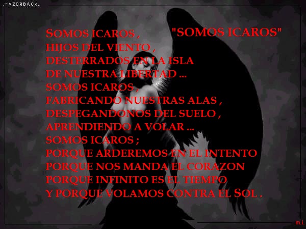 Toda la vida ha sido asi .. .. pero cuando ya se juntan unas cuantas , nos gustaría darlas a conocer . . . lo importante . . . . las canciones . . .. llegaros y que no se pierdan en el hiperespacio . . . .para quien las disfrute . . . para quien busque algo un poco diferente , aquí os dejaremos los cortes esperando vuestra opinión .. . . se acepta de todo .. .. mucas gracias , atentamente , Marcos Icaro.»