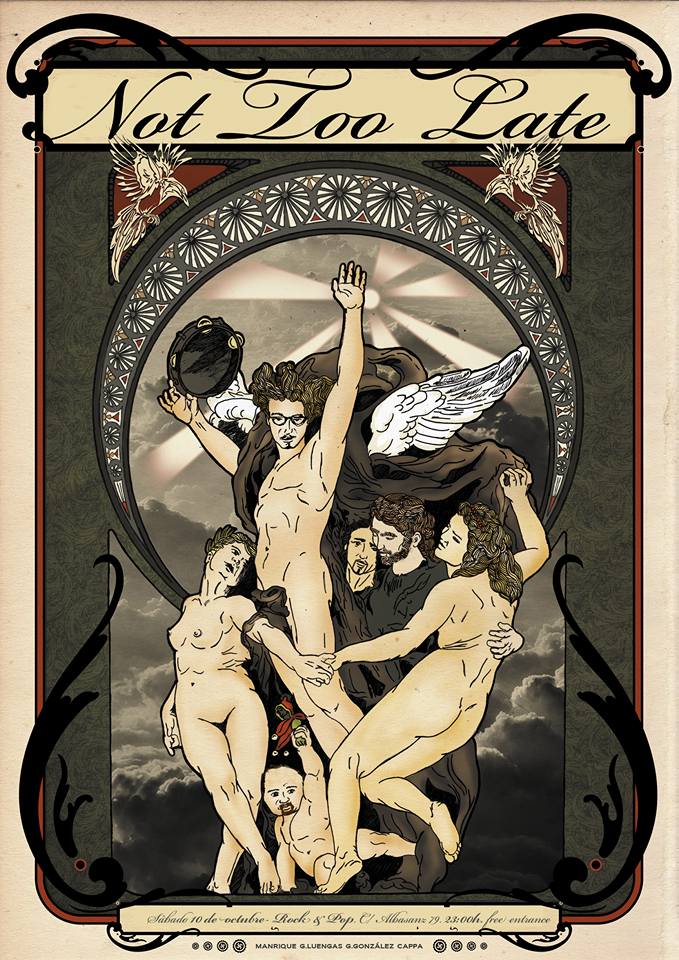 Él llevaba más de 10 años desconectado del panorama de bandas y directos(Banana Funkoca, Rain & Cloud), por lo que comenzó una ardua andadura, la búsqueda de músicos de calidad que no solo ejecutaran los temas e ideas que llenaban su cabeza, además tendrían que interpretarlos, hacerlos suyos y volcar su alma, dedicación y tiempo a partes iguales en este proyecto común que es ….NOT TOO LATE.