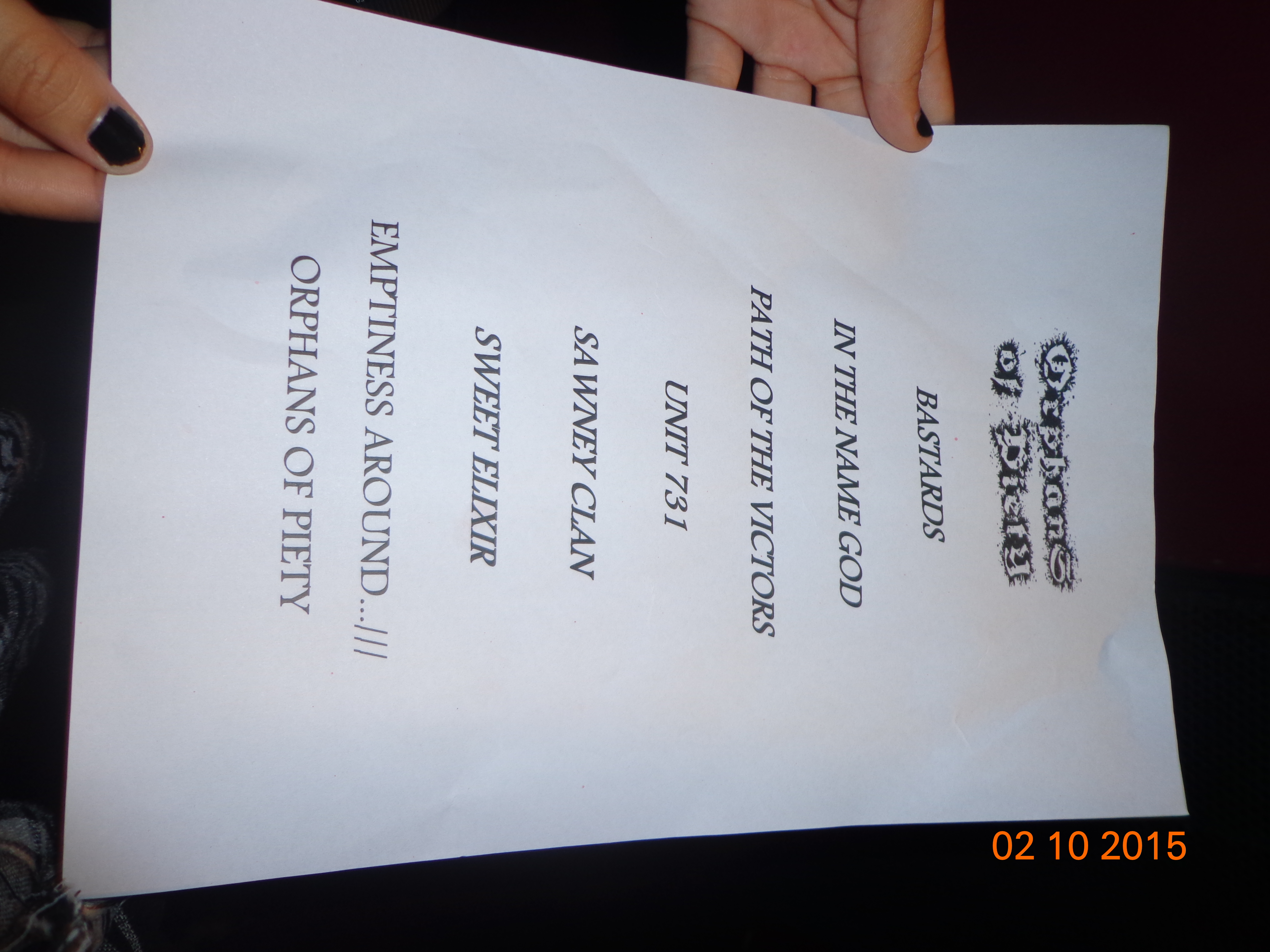 Los orphans of piety dieron un show exquisito , instrumentistas vocalistas muy unidos y compactos que hacen que esta formación no pase desapercibida en ningún lado donde se presenten