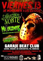 «Coulrofobia» es el quinto trabajo de LOS CARNICEROS DEL NORTE, disco conceptual sobre el miedo a los payasos y el mundo del circo a través del celuloide. Tras pasear su caravana de monstruos por medio mundo aterrizan de nuevo en su sala favorita con su espectáculo de circo y horrorpunk. Esta vez vienen acompañados de MOTORZOMBIS, que presentan su nuevo disco, «Están vivos!». Mezcla entre horrorpunk, rockabilly y hard rock ochentero que da lugar a un psychobilly contundente y ecléctico. Ambas bandas basan todas sus letras en el cine de terror, combinación perfecta para un viernes 13. Completa el cartel la banda de Puerto Lumbreras SINIESTROSIS, con su after-troll con organillo siniestro.