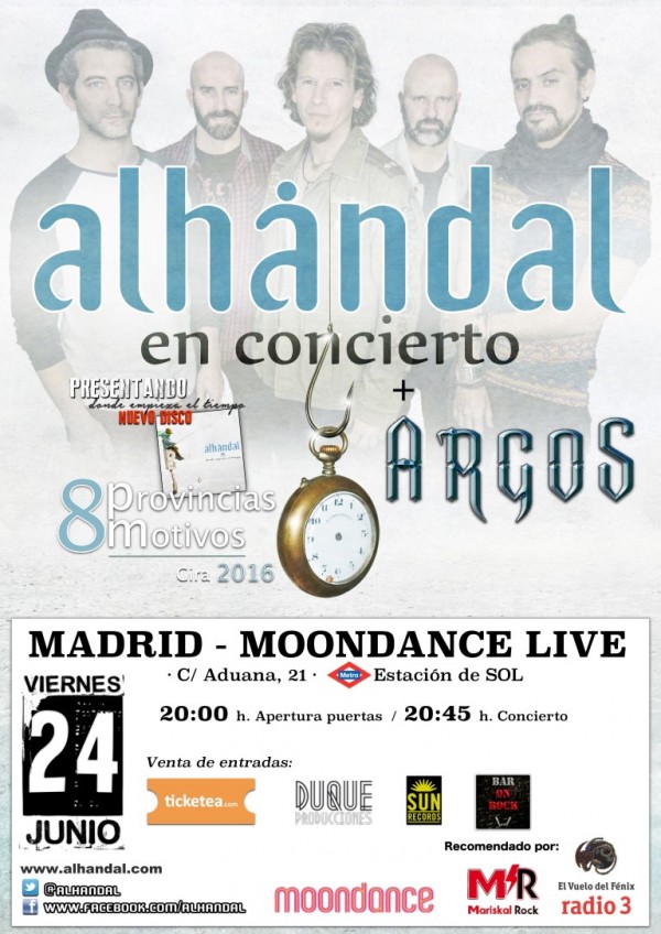 La gira #8Provincias8Motivos prosigue y expande sus horizontes a la capital. Alhándal presentará el próximo viernes 24 de junio su cuarto disco, “Donde empieza el tiempo”, en la sala Moondance Live, acompañada de la banda Argos. Alhándal mantiene con Madrid un intenso idilio banda – público, gracias a las buenas sensaciones y grandes noches de visitas pasadas.