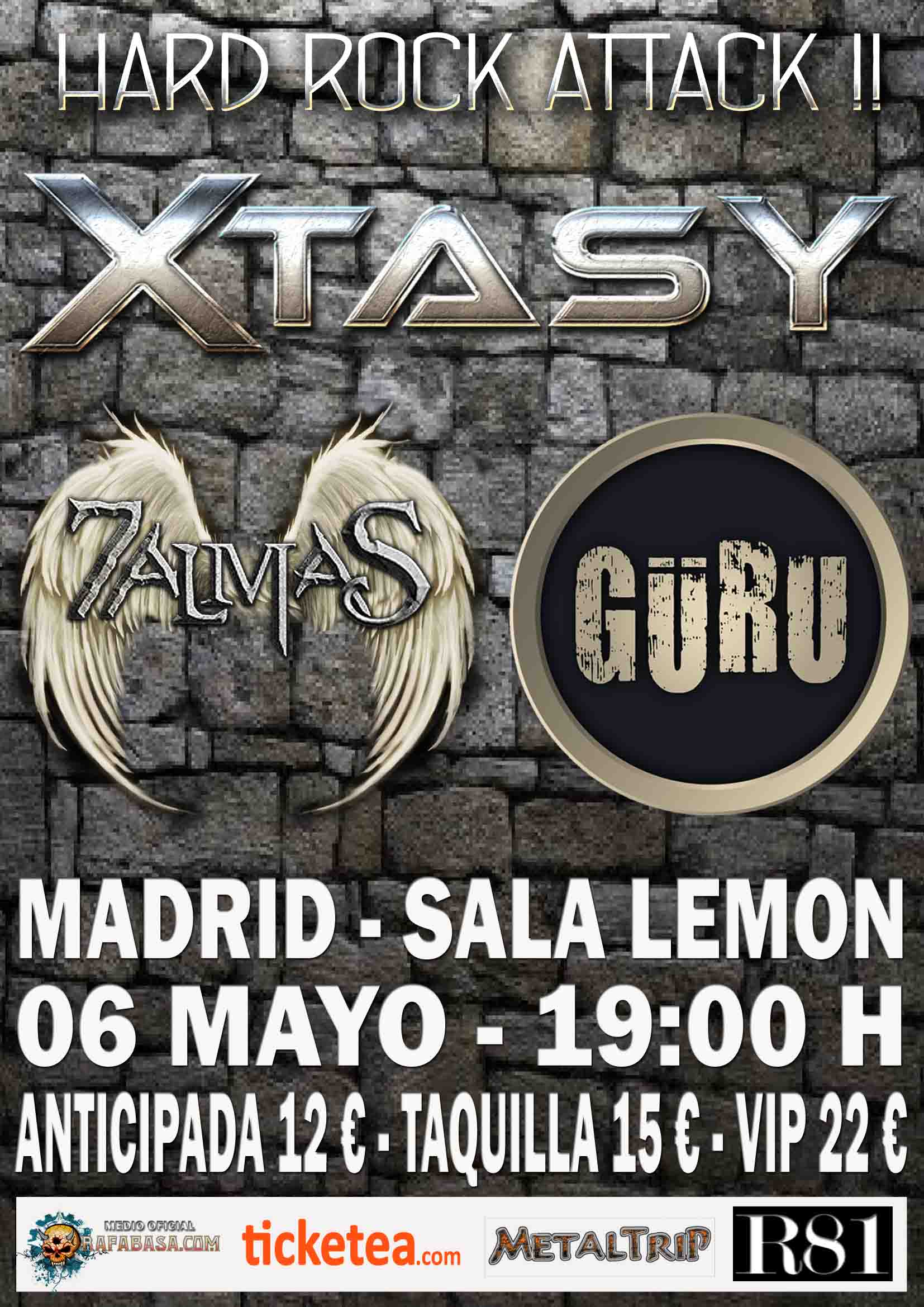 Madrid: https://www.ticketea.com/entradas-concierto-hard-rock-attack-madrid-xtasy-guru-7-almas/