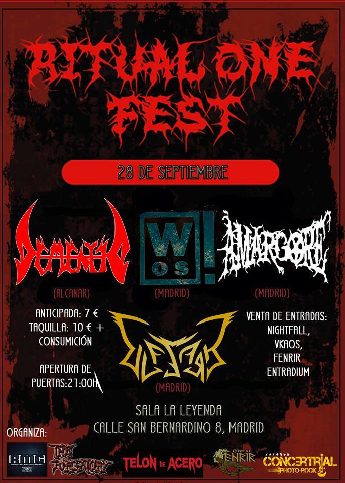 El jueves podremos encontrar a los genuinos catalanes Demented, los brutales madrileños AMARGORE, WOS con grandes ganas de lucirse en el escenario y los madrileños Ulfsark.