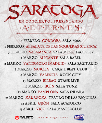 SARATOGA comenzó la gira de presentación de “Aeternus”, su nuevo y esperado nuevo disco, con dos exitosos conciertos, en Córdoba y Albalate de las Nogueras (Cuenca). En ellos pudimos ver como sus fans están ansiosos por volver a ver a la banda en directo y presenciar en vivo la energía y el poder de sus nuevos temas, además de disfrutar de algunos de sus clásicos más emblemáticos.