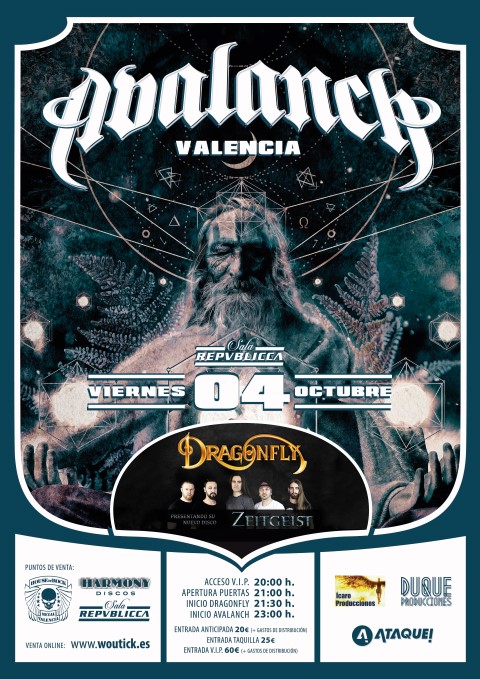 | «YA está aquí la continuación de la gira española deAvalanch con su último disco, «El Secreto», en la cual confirman las primeras 4 ciudades por las que pasará la formación más internacional que ha tenido esta banda de origen asturiano. Murcia, Valencia, Barcelona y Madrid confirman sus fechas, 3,4 y 5 de octubre 2019 y 18 de enero 2020 respectivamente, en las cuales la banda dará un show muy especial, basado en su última obra, y también apoyado por sus grandes Hits. Barcelona tiene un cambio a la sala Bikini, pero todas las entradas adquiridas para la anterior ubicación serán totalmente válidas. Atentos a la opción del pase VIP y sus ventajas que se irán desvelando próximamente. Además, estarán muy bien acompañados por Dragonfly en Valencia y Regresión en Barcelona, donde tendrán la oportunidad de presentar a su nuevo cantante Antony Ellisen la Ciudad Condal.Información y entradas a la venta en Wegow.com MADRID https://www.wegow.com/es-es/conciertos/concierto-de-avalanch-en-teatro-kapital-madrid MURCIA https://www.wegow.com/es-es/conciertos/concierto-de-avalanch-en-murcia-garaje-beat-club VALENCIA https://www.wegow.com/es-es/conciertos/concierto-de-avalanch-en-valencia-republiccaBARCELONA https://www.wegow.com/es-es/conciertos/concierto-de-avalanch-en-barcelonaCARTEL MURCIA 3 DE OCTUBRE | ||