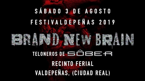 | Brand New Brain regresan a los escenarios, 1ª Parada Valdepeñas (Ciudad Real) 3/8 del 2019 Brand New Brain están de vuelta La banda de rock y metal alternativo Brand New Brain, que el pasado año anunciaron un parón necesario temporal por complicaciones de salud después de haber actuado abriendo los conciertos para Jorge Salán en Valencia, Barcelona y Toledo, han anunciado que están de vuelta desde hace unos meses y estarán tocando este próximo 3 de agosto como teloneros de Sôber en el Festi Valdepeñas 2019, en Valdepeñas (Ciudad Real). ENLACE A VÍDEO: https://youtu.be/3Ts2ma5Ja-g Más información en www.brandnewbrain.es y en el facebook del festival Contratación: DUQUE PRODUCCIONES contratacion@duqueproducciones.com http://duqueproducciones.com/ |