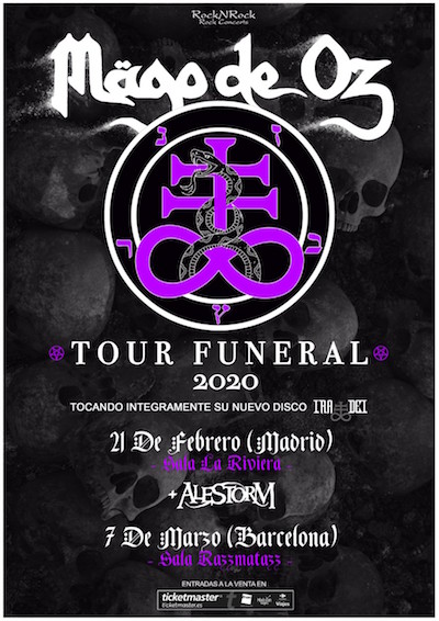 Ya puedes hacerte con las entradas de los conciertos de Madrid y Barcelona que incluirá el Tour Funeral 2020, una gira que incluirá aproximadamente 12 fechas, que anunciaremos en breve, en las que MAGO DE OZ tocará íntegramente su nuevo disco «Ira Dei» ¡No te quedes sin la tuya!