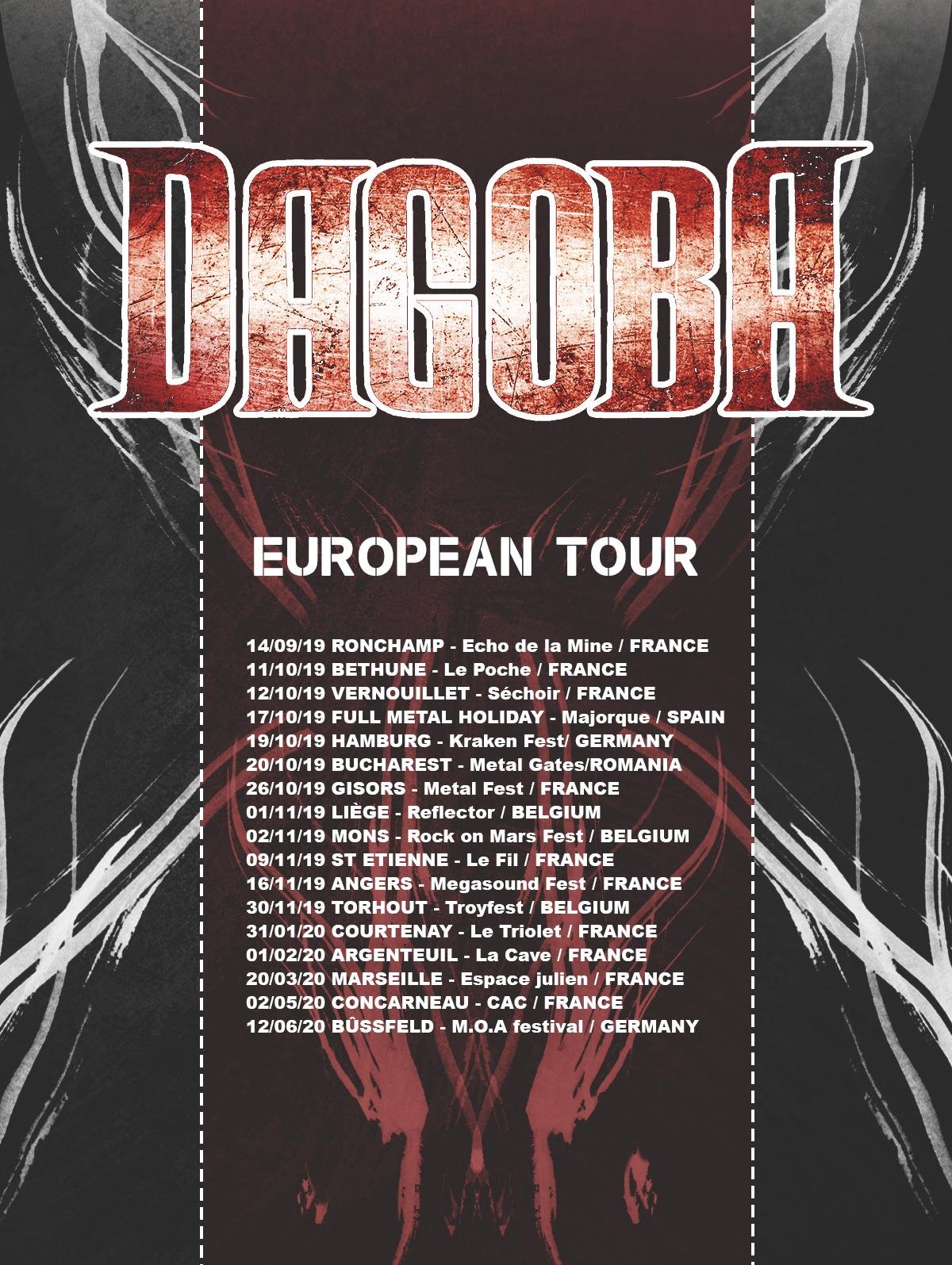 Y la banda dice: «DAGOBA se enorgullece de trabajar con Napalm Events para reservas mundiales. Es un momento emocionante para la banda, y estamos felices de seguir de gira por nuestro álbum actual #BLACKNOVA y podemos revelar los siguientes conciertos. Nos vemos en ¡El camino!»