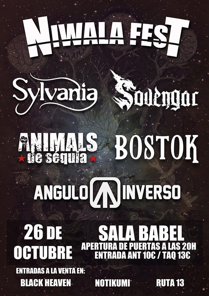 Tras haber arrasado en su gira con Rhapsody of Fire, los valencianos SYLVANIA serán los encargados de encabezar el cartel. Junto a ellos estarán los viking/epic metaleros de Sovengar, y los madrileños Ángulo Inverso presentando su nuevo disco, ‘Insania‘. Animals de Sèquia y Bostok son las dos bandas alicantinas que este año completan el cartel. Las entradas anticipadas las podéis adquirir en el Pub Ruta 13 y a través de la plataforma Notikumi.