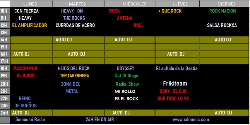 Estrenamos el año 2020 con una nueva apuesta «No somos una Radio.. somos tú Radio»Ahora que finaliza el año la Agencia de representación artística Duque Producciones quiere agradecer a todos los profesionales de la música por seguir confiando en nuestro trabajo, este ha sido otro año mas en nuestra ya dilatada vida en pro de la música, nos es muy gratificante que nuestra mejor carta de presentación sean «Nuestros propios clientes y amig@s»El sello discográfico CD MUSIC quiere seguir avanzando en su camino para llevar la música de nuestros artistas a todos los rincones del mundo,con este propósito nace un Canal de Radiodifusión 24h On Line 100% Rock&Metal en todas sus variantesAl frente de la programación se encuentra María José López (Locki Sanher) una comunicadora con gran experiencia en el mundo de Radio El objetivo dar a conocer las nuevas propuestas de la música,agenda de conciertos y festivales etc.. así como potenciar la difusión de los nuevos trabajos de las bandas que apuestan por nuestro sello discográfico para sacar sus discos y posterior promoción del mismo.La emisora dispone de una programación 100% Rock&Metal compuesto por una gran variedad de programas de radio y el más amplio Auto-Djcon la mejor selección musical de todos los tiempos.Esta disponible en diferentes plataformas nacionales e internacionales como Radio.es, MyTurner, Raddios,Nobet entre otras. | |