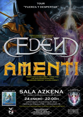 | La banda asturiana Edén sigue dando pasos firmes en la presentación de su nueva obra «EL despertar de los sueños» Con una gira que unirá su camino al de sus paisanos Amenti, que a su vez también presentarán su nuevo disco «Fuerza Vital» recorriendo juntos la geografía española en la gira «Fuerza y Despertar Tour» en varias fechas: | |