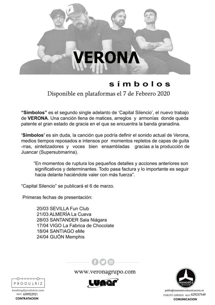 VERONA- «SIMBOLOS» /// SEGUNDO SINGLE ADELANTO DE SU PROXIMO ALBUM /// magazinerockcomunidad10 febrero, 202019 marzo, 2020Noticias Navegación de entradas AnteriorSiguiente https://www.youtube.com/channel/UCaTXTu5AUFqY0Fh0fsmlKUg Comparte esto:Tweet Enviar un enlace a un amigo por correo electrónico (Se abre en una ventana nueva) Correo electrónico Compartir en Tumblr Compartir en WhatsApp (Se abre en una ventana nueva) WhatsApp Compartir en Telegram (Se abre en una ventana nueva) Telegram Más Imprimir (Se abre en una ventana nueva) Imprimir Me gusta Cargando... Relacionado