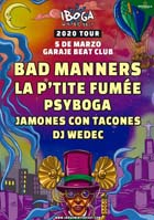 IBOGA WINTER FEST BAD MANNERS + PSYBOGA LA P’TITE FUMÉE + DJ WEDEC JAMONES CON TACONES Jueves 5 de marzo · 21:00 · Garaje Beat Club (MURCIA)Anticipada: 19 euros + gastos / Taquilla: 25 euros Venta anticipada online y física: Compralaentrada.com Iboga Summer Festival, celebrado el último fin de semana de julio en la playa de Tavernes de la Valldigna (Valencia), es todo un referente internacional para los amantes del balkan, gypsy, swing, ska, reggae, folk, punk, hiphop y sus fusiones. Iboga Winter Fest mantiene vivo el espíritu del festival en invierno con un evento itinerante para bailar con toda la magia de las músicas de la Madre Tierra en diferentes ciudades, con dos enormes bandas en cartel, los británicos BAD MANNERS, mítico grupo de la denominada «Two Tone» formado en 1978 en Londres, y los franceses LA P’TITE FUMÉE, uno de los grandes referentes internacionales de la nueva escena «natural trance». Les acompaña PSYBOGA, nueva formación creada para la ocasión, que ofrecerá sesiones rompepistas con los beats más contundentes cerrando un evento que en Murcia abrirán los locales JAMONES CON TACONES. Completa el cartel DJ WEDEC. |