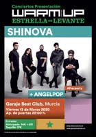 | PRESENTACIÓN WARM UP ESTRELLA DE LEVANTE SHINOVA + ÁNGELPOP DJ Viernes 13 de marzo · 22:00 · Garaje Beat Club (MURCIA)Últimas entradas: 14 euros + gastos / NO HAY TAQUILLA Venta anticipada: Wegow «Cartas de navegación» es el quinto disco de los vizcaínos SHINOVA, con el que se confirman definitivamente como una de las bandas españolas que mejor ilustra la palabra «conmover» en el diccionario. Once nuevas canciones en las que Gabriel de la Rosa se sigue confirmando como una de las voces más personales y envolventes del panorama actual, al frente de una banda mucho más madura, que se despoja de la comodidad y se abre a la experimentación a través de composiciones que han crecido en empatía, contagio y explosión gracias a estribillos de esos que necesitas cantar a gritos. Una de las realidades más potentes de la música alternativa hecha en castellano, esa que encaja de alguna forma en tu vida y tus recuerdos, y al escucharla te remueve por dentro. Una banda cuyo gran valor es hacerte sentir algo en cada melodía. |