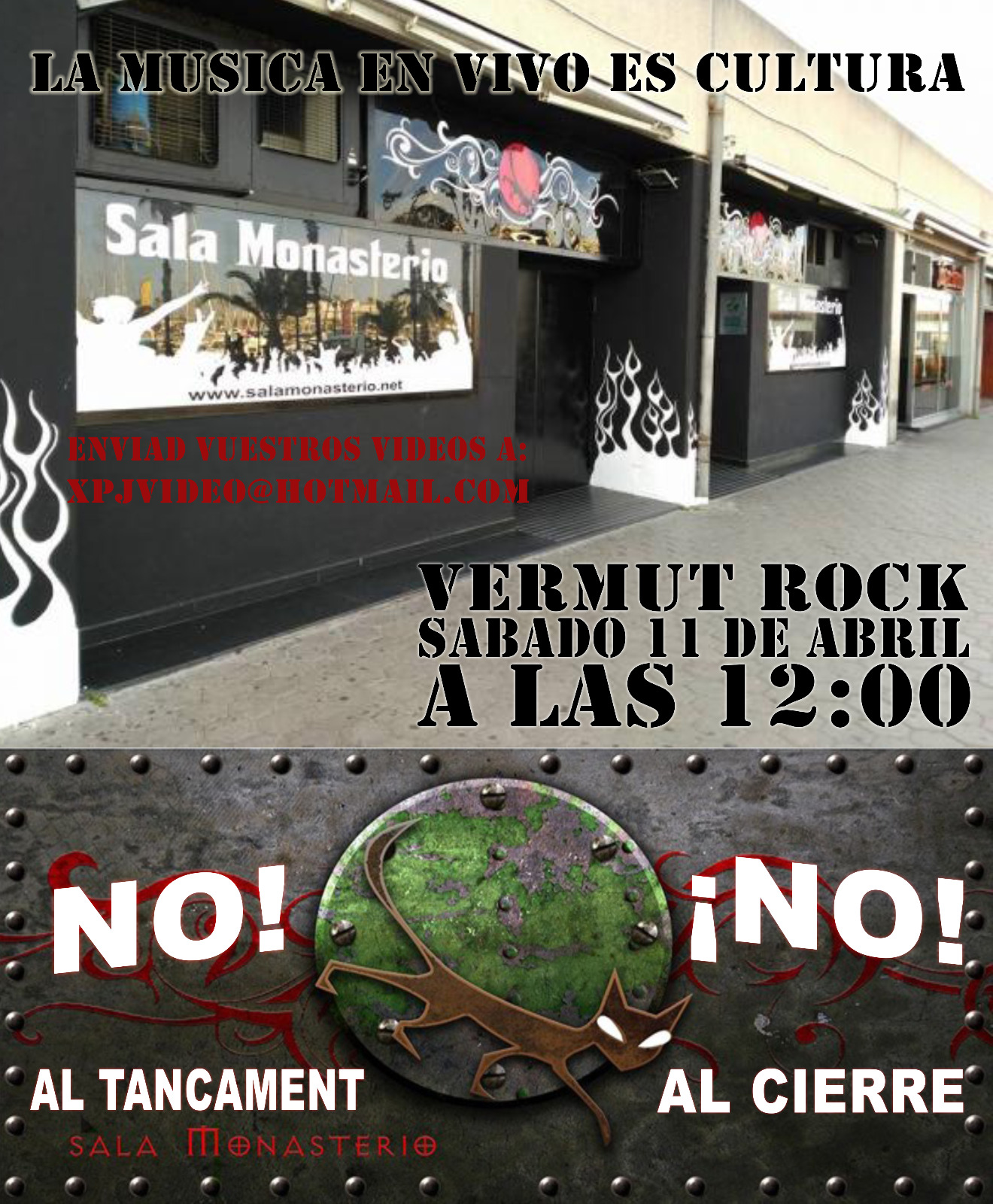 Grábate tocando con el cartel de fondo No al cierre de la sala Monasterio o bien enviando un mensaje para difundirlo entre todos los amantes de la música y envíalo al correo electrónico xpjvideo@hotmail.com
