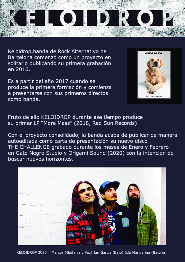 La banda de Rock Alternativo de Barcelona KELOIDROP, acaba de publicar su nuevo disco «THE CHALLENGE» ya disponible en todas las plataformas digitales y próximamente en formato físico.