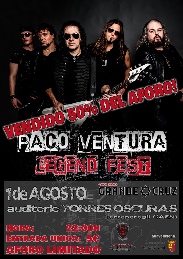 Este año nos hemos quedado sin festivales, nos hemos quedado sin Barcia Metalfest, con lo bien que pintaba. Pero, la asociación que lo organiza no quería dejar un año sin música, así que este próximo Sábado nos ofrecen la posibilidad de ver uno de los pocos conciertos del verano. Paco Ventura Legend Fest será el encargado de ofrecernos este evento, además acompañados de una banda de la provincia de Jaén, Grande Cruz que debutaran como banda en el auditorio Torres oscuras y lo mejor por tan solo 5 euros. Con todas las medidas oportunas para el buen desarrollo y donde además podrás llevar bebida (a excepción de cristal) ya que no pondrán barra. Una Gran ocasión para disfrutar de la música, eso sí con aforo limitado.