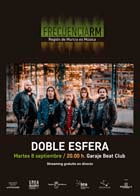 | FRECUENCIA RM: REGIÓN DE MURCIA ES MÚSICA DOBLE ESFERA Martes 8 de septiembre · 20:00 · Garaje Beat Club (MURCIA)Streaming gratuito en directo Tras un largo parón provocado por la pandemia, DOBLE ESFERA regresa a los escenarios el martes 8 de septiembre, en lo que será además el regreso de la música en directo a la emblemática sala murciana Garaje Beat Club, que abrió sus puertas por última vez el 7 de marzo. El grupo se encontraba presentando su nuevo disco, «Futuro», cuando se decretó el estado de alarma y la gira tuvo que parar. El álbum se publicó el 4 de febrero y ha supuesto una evolución en el sonido de la banda, introduciendo electrónica y teclados en canciones que sorprendieron por la evolución estilística sin perder la esencia del grupo, con riffs vertiginosos de guitarra, voces melódicas y estribillos inmortales. Antes del confinamiento la gira pasó por Murcia, Valencia, Almería, Málaga, Zaragoza, Salamanca, Tarragona y Albacete. A partir de octubre retomará las ciudades que quedaron pendientes, como Madrid, Barcelona, Sevilla, Vitoria, Gijón o Vigo. |