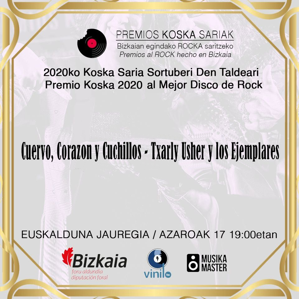La banda vasca «Txarly Usher y Los Ejemplares» obtiene el galardón «MEJOR DISCO DEL AÑO BIZKAIA» por su trabajo «Cuervo, Corazón y Cuchillo» en los «Premios KOSKAK SARIA 2020» celebrados el pasado 17/11.