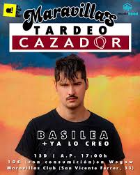 | Tras un primer Tardeo Cazador con una respuesta del público de verdadero sobresaliente ante las actuaciones de Tshna e Isla Lavanda, llega la segunda sesión de este evento dominguero. El lugar seguirá siendo el Maravillas Club, y en esta ocasión se subirán al escenario el barcelonés Basilea y el dúo madrileño Ya Lo Creo. La fecha, el 13 de diciembre. |