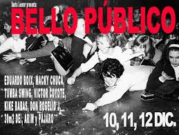 | El 10, 11 y 12 de diciembre llega… BELLO PÚBLICO 2020Vuelve Bello Público, un encuentro entre la palabra y la música y su relación con otras disciplinas artísticas como la poesía, la pintura, la fotografía, el cine, la performance… Bello Público pretende tender un puente entre artistas que practican mas de una disciplina o las mezclan entre sí demostrando aquello que en común tienen la palabra y el ritmo, o dicho de otra manera la poesía y la música: los temas, el ambiente, las formas de tocar, de escribir, de contar y de hablar como expresión de la misma cosa. Con Bello Público pretendemos acercar la poesía y ciertas disciplinas artísticas a un público no acostumbrado a ella, más centrado en la música como algo lúdico y que a veces deja de lado la importancia de los textos que acompañan esa música, indistintamente de su género o estilo o del formato en el que se publiquen, como letras de canción, como diarios, como poemas, como novela gráfica o simplemente como novela. Para ello fusionaremos diferentes disciplinas artísticas con conciertos recitados, improvisación, ilustración, cómic, exposiciones, cine, documenttales y acciones performativas. La intención es mostrar una visión gozosa, un valor añadido a este encuentro, siendo una oportunidad mas de acercarse a la de cultura desde lo bello y desde lo público. Para ello contaremos con las siguientes actividades: Jueves 10 – 20:30h – Caja Negra – Las Cigarreras – Eduardo Boix – Macky ChucaViernes 11 – 20:30h – Caja Negra – Las Cigarreras – Tumba Swing – Victor Coyote Sábado 12 – 12:00h – Pynchon&co – Victor Coyote, Kike Babas y Don Rogelio charlan sobre la creación de sus últimos trabajos en plena pandemia. Sábado 12 – 18:30h – Caja Negra – Las Cigarreras – 30m2 de/ – Arim Sábado 12 – 21:00h – Caja Negra – Las Cigarreras – Kike Babas – Pájaro Entradas para Eduardo Boix y Macky Chuca, aquí. Entradas para Tumba Swing y Victor Coyote, aquí. Entradas para 30m2 de/ y Arim, aquí. Entradas para Kike Babas y Pájaro, aquí. |