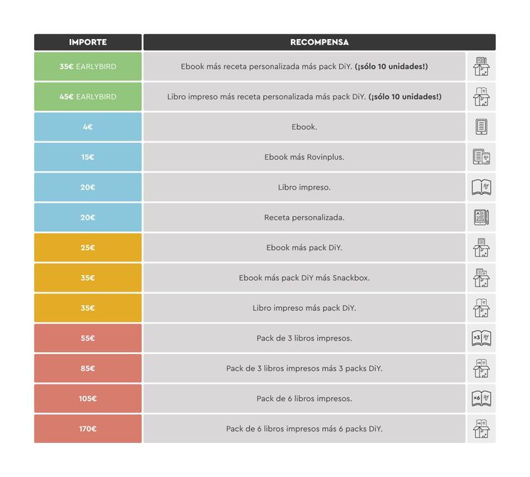 ¡Tu perro se merece lo mejor! El libro de recetas caninasRovinbook será un recopilatorio de las recetas personalizadas elaboradas específicamente para los mecenas que aporten por una de ellas. Haz que tu inseparable compañero pueda disfrutar de unos platos caseros, completos y equilibrados.Además, ¡descuentos y regalos exclusivos disponibles solo durante la campaña!