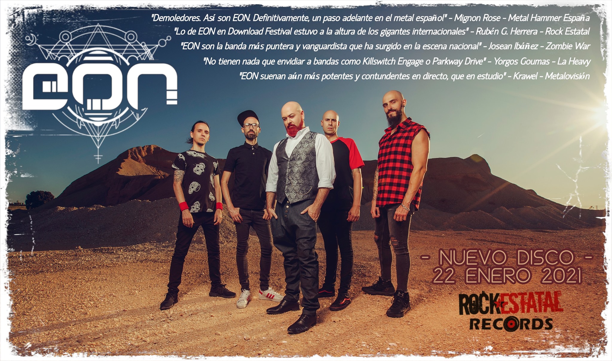 Han sido seis años en los que hemos editado dos discos que ya son parte inevitable de la banda sonora de mi vida. Poco más de un lustro en los que he visto crecer de forma exponencial a una banda casi desconocida que, no sin esfuerzo, ha logrado entrar en carteles como Download Festival, ZLive, Rock The Night o Resurrection Fest, entre otros. Recorrer ciudades por las que nunca habíamos pasado y actuar junto a increíbles compañeros de escena. Reconocimientos por parte de la prensa especializada a lo largo y ancho del país que, en estos últimos años nos han cuidado y ayudado a llegar a más gente. Recuerdos maravillosos que siempre llevaré conmigo, al igual que a los cuatro ex compañeros de batallas, a los que dejo al frente de una banda a la que deseo la mejor de las suertes. Seguiremos ligados por la parte mercantil de EON y sus canciones, pero sobre todo…, por lo personal y lo vivido. Y aunque hayamos tenido momentos que hubiésemos querido borrar en nuestra convivencia, el balance es muy positivo, pues todo nos enseña a crecer y a valorar lo obtenido.