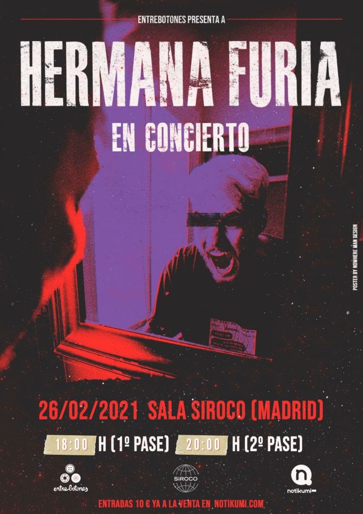 El próximo 26 de febrero de 2021 Hermana Furia actuará en la sala Siroco de Madrid en dos pases, uno a las 18:00 y otro a las 20:00h, el aforo de cada pase es de 38 personas y se cumplirán todas las medidas de seguridad para evitar la propagación del virus COVID 19 #culturasegura.