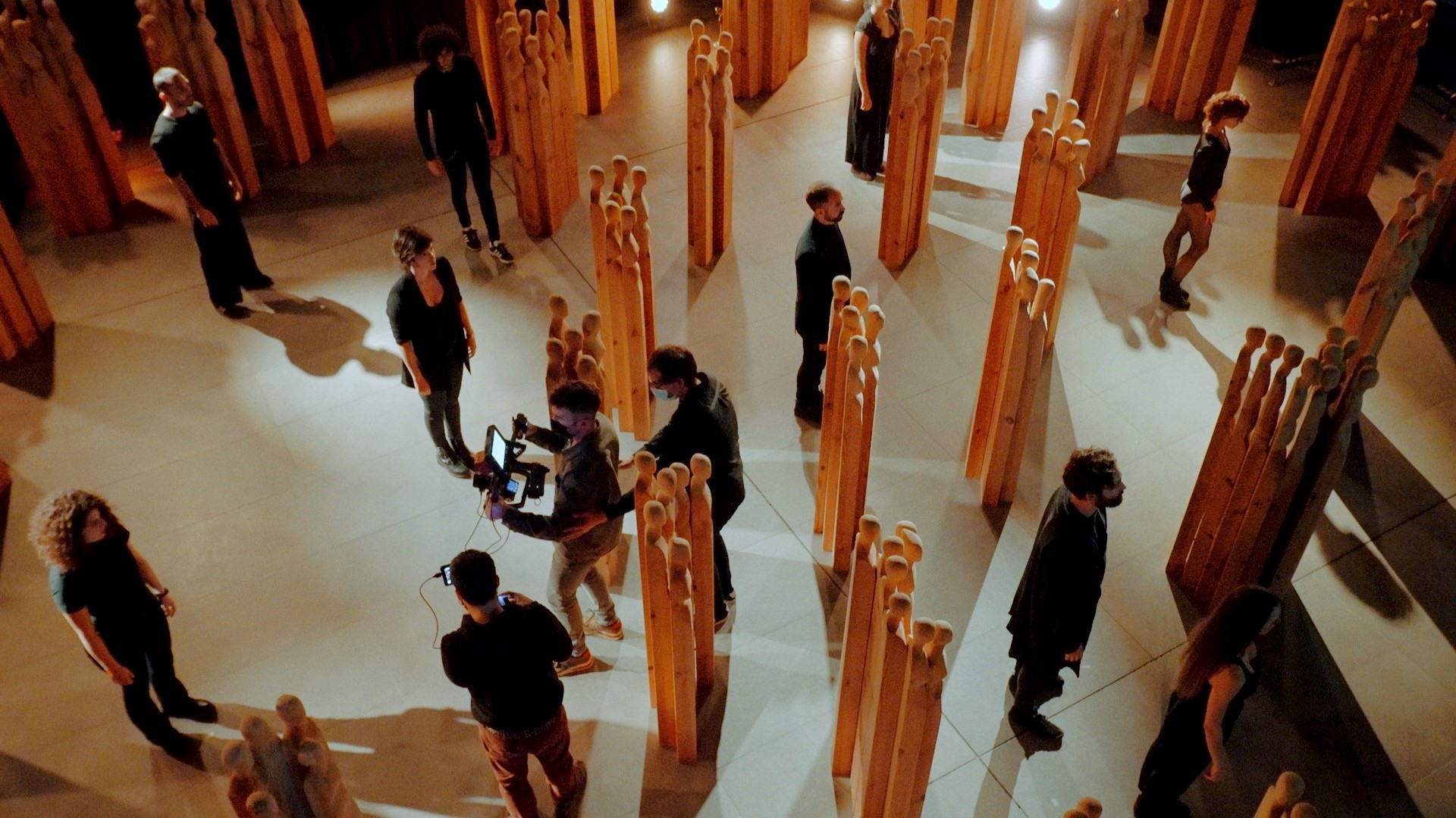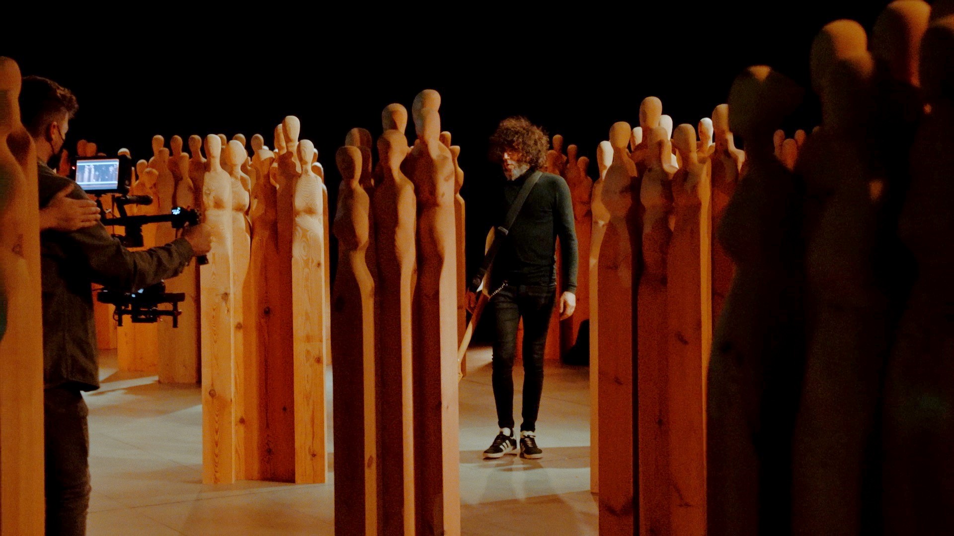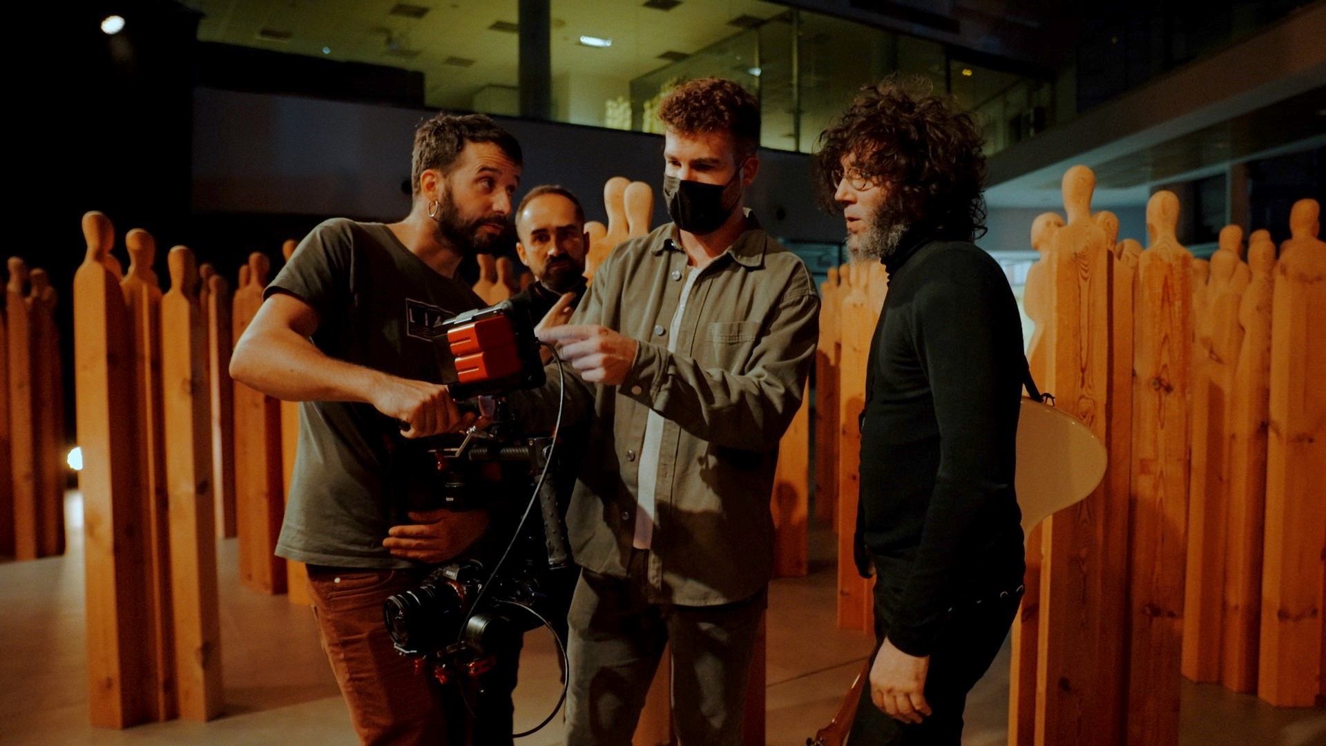 Lander (Ayudante de Cámara), Samuel (Coreógrafo y bailarín), Álvaro (Realizador) y Diego.Rodaje e inspiración del videoclip. MUSEO WÜRTH LA RIOJA Se dice de la inspiración que es un estímulo o lucidez, reacción que siente una persona y que favorece la creatividad, la búsqueda de soluciones, la concepción de ideas que permiten emprender un proyecto, y muy especialmente la que siente el artista y que impulsa la creación de obras de arte.Partiendo de la perspectiva y la emoción que experimenta el creador cuando se sumerge en la obra de otro, nace algo nuevo, algo que trasciende más allá de la idea inicial. Este es el caso de “ Frágil ” una pieza que se nutre de distintas disciplinas y ha podido ser forjada desde la colaboración de un equipo humano en total sintonía.“Frágil” ha conseguido aunar el talento de distintos autores, el músico y letrista Diego M. Continente y su banda Messura, el escultor Félix Reyes, el bailarín y coreógrafo Samuel Retortillo, la bailarina Luciana Croatto y el realizador audiovisual Álvaro Sáinz. Y ha sido rodado en el Museo de Arte Contemporáneo Würth La Rioja entre la obra escultórica “Laberinto” de Félix Reyes, perteneciente a la colección del museo.El aporte de todos ellos y su personal mirada a la hora de combinar cada una de sus disciplinas ha quedado plasmado en “Frágil”, el videoclip con el que Messura presenta su nuevo tema.