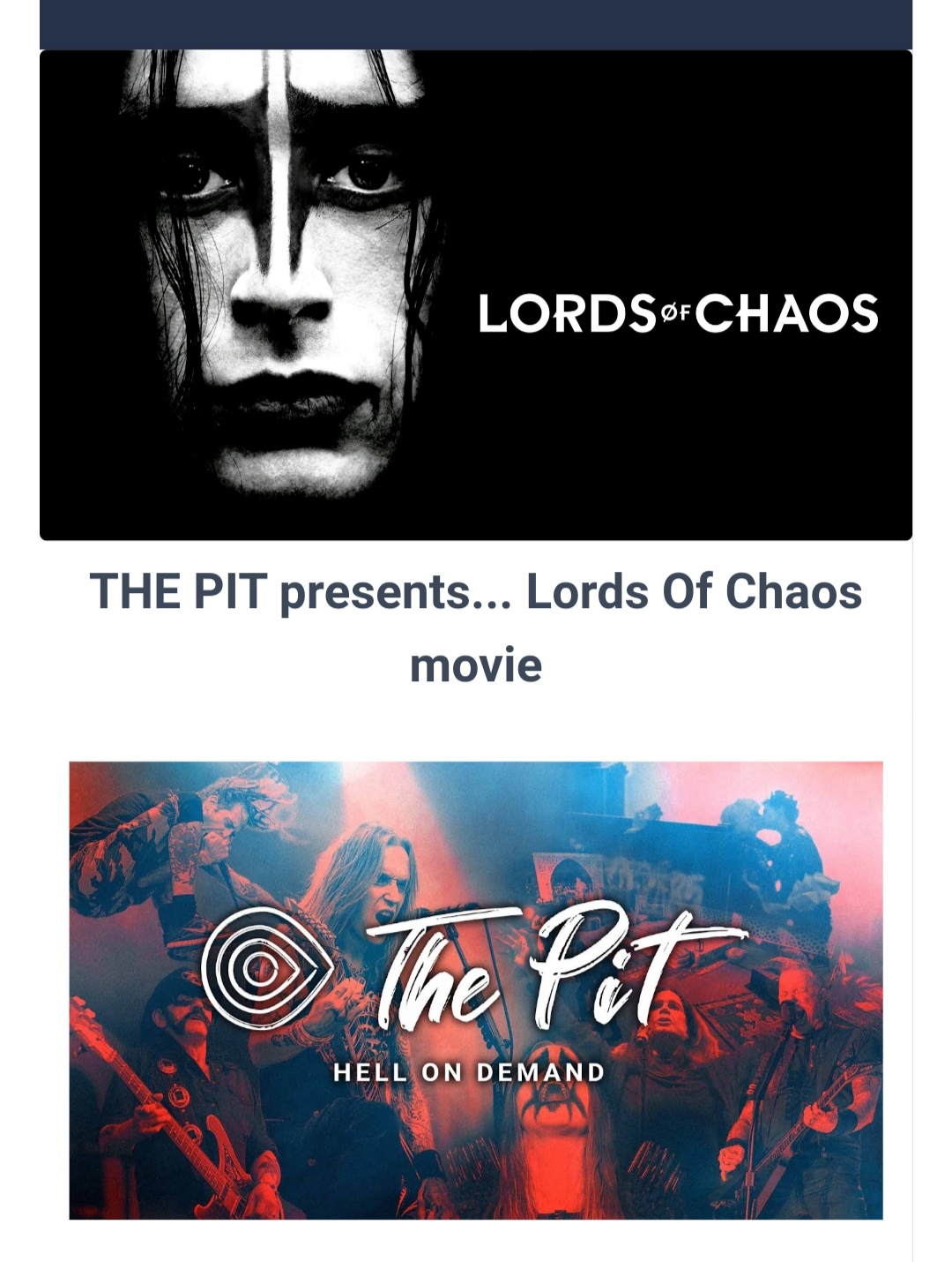 Después de presentar contenido increíble en la plataforma con ‘RocKabul’, ‘Soaring Highs And Brutal Lows’ o ‘Sound Of Scars’ sobre Life Of Agony, THE PIT (también conocida como la primera plataforma SVOD dedicada al universo ROCK & METAL), Recientemente agregó nuevo contenido asombroso con la transmisión de la actuación en vivo de los autores intelectuales franceses del blackened-hardcore Celeste @ Le Trabendo París, Francia y ahora la película Lord Of Chaos (2018) dirigida por el cineasta sueco Jonas Åkerlund, disponible ahora mismo en la plataforma.