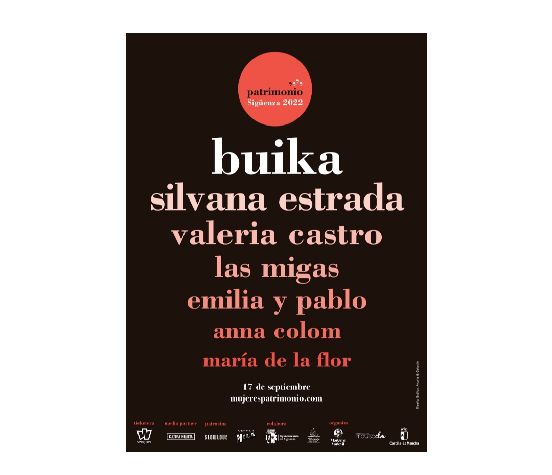 Madrid, 22 de agosto de 2022.- Una celebración musical tendrá lugar el sábado 17 de septiembre en la Plaza Mayor de Sigüenza: la primera edición de MUJERES, PATRIMONIO que contará con la participación de Buika, Silvana Estrada, Valeria Castro, Las Migas, Emilia y Pablo, Anna Colom y María de la Flor.