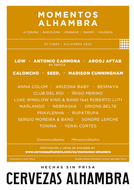 MOMENTOS ALHAMBRA PRESENTA SU CARTEL MÁS INTERNACIONAL ESTE OTOÑO: LOW, AROOJ AFTAB, CALONCHO, SEED., MADISON CUNNINGHAM