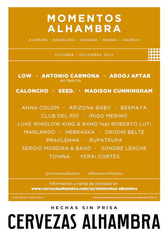 MOMENTOS ALHAMBRA PRESENTA SU CARTEL MÁS INTERNACIONAL ESTE OTOÑO: LOW, AROOJ AFTAB, CALONCHO, SEED., MADISON CUNNINGHAM
