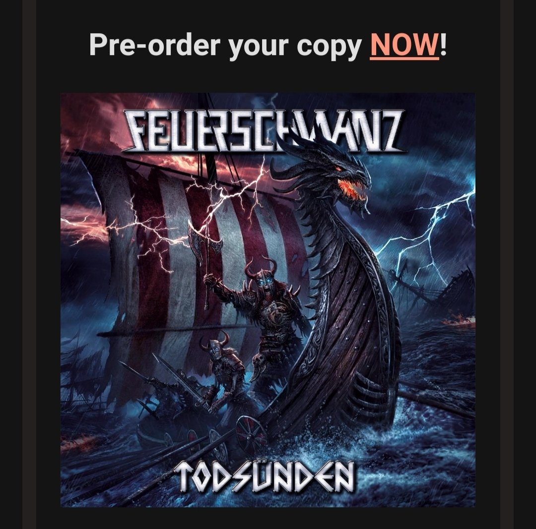 Demostrando su versatilidad con cada canción de este álbum, FEURSCHWANZ supera las limitaciones lingüísticas, musicales y específicas del género y une a la taberna en una fiesta sonora. Combinando sin esfuerzo diferentes géneros, los genios del folk rock medieval reinterpretan todo, desde el pop hasta el punk rock y los éxitos del metal, sin perder nunca su propio sonido característico. De amados árboles de hoja perenne como “¡Gimme! ¡Dame! ¡Dame!” para trazar toppers como su último lanzamiento «Blinding Lights», todos encontrarán su favorito. Con el humilde apoyo de íconos como Melissa Bonny (Ad Infinitum), Saltatio Mortis y Angus McSix, Todsünden es un espectáculo musical incomparable.