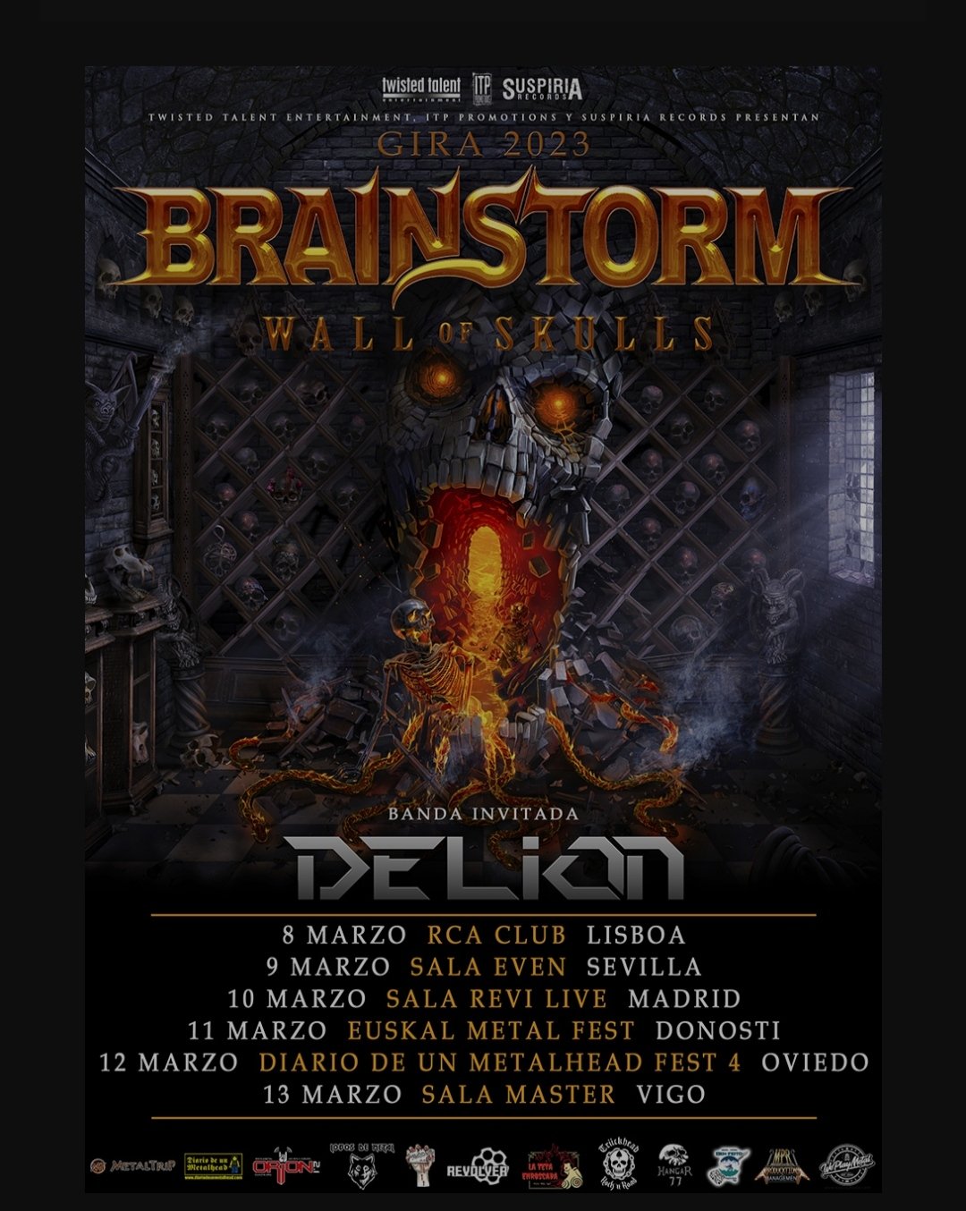 Tras su paso por el Autumn Alive Festival (Vigo) y su gira por la península en 2019, vuelven los alemanes Brainstorm de mano de Twisted Talent Entertainment, ITP Promotions y Suspiria Records. Lisboa, Sevilla, Madrid, Donosti, Oviedo y Vigo recibirán a estos cinco grandes del Power Metal europeo.