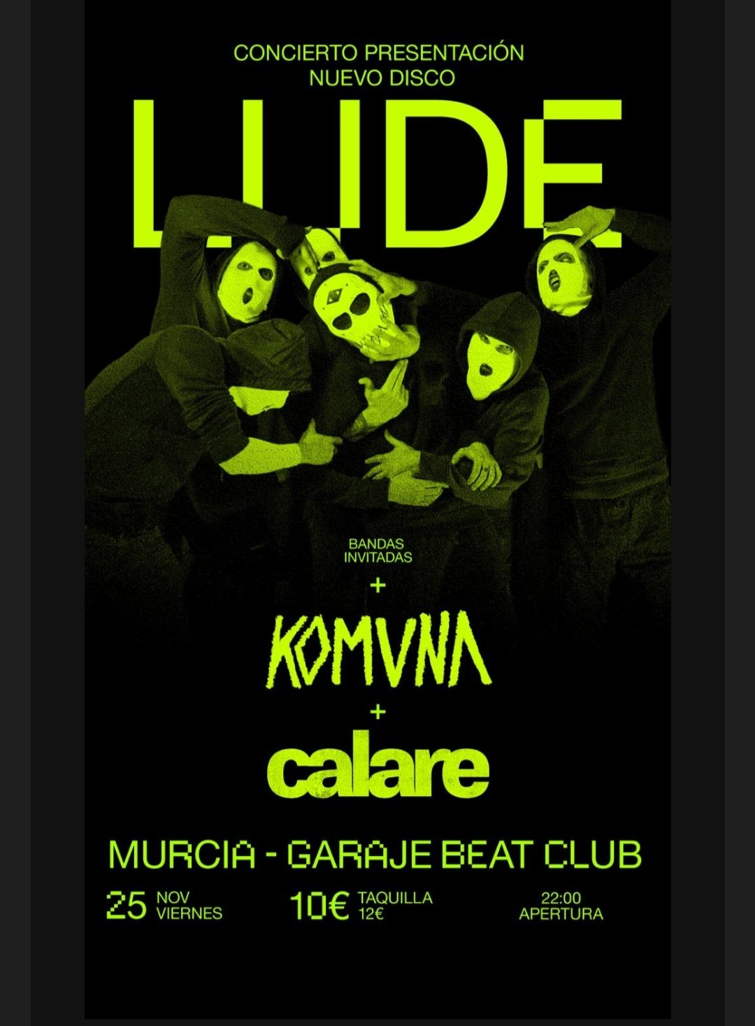 “Lapso” será presentado en primicia y en un único concierto en la sala Garaje Beat Club de Murcia. Habrá muchas sorpresas en el escenario y contarán con colaboraciones. Además, las bandas que acompañarán a Lude son Komvna Kabra y Calare.