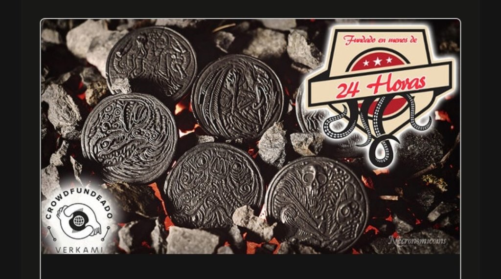 Tomás Hijo, Víctor Marín y El artesano del Rey presentan las Necronomicoins, unas réplicas asombrosamente fieles a las piezas recuperadas del infame dinero negro, un tipo de moneda usado por nigromantes, alquimistas y sacerdotes de los antiguos cultos, que según cuenta la leyenda, aparecieron hace una década en una excavación en la zona desértica de Rub Al Khali y que ahora está empezando a aparecer en los lugares más insospechados del planeta.