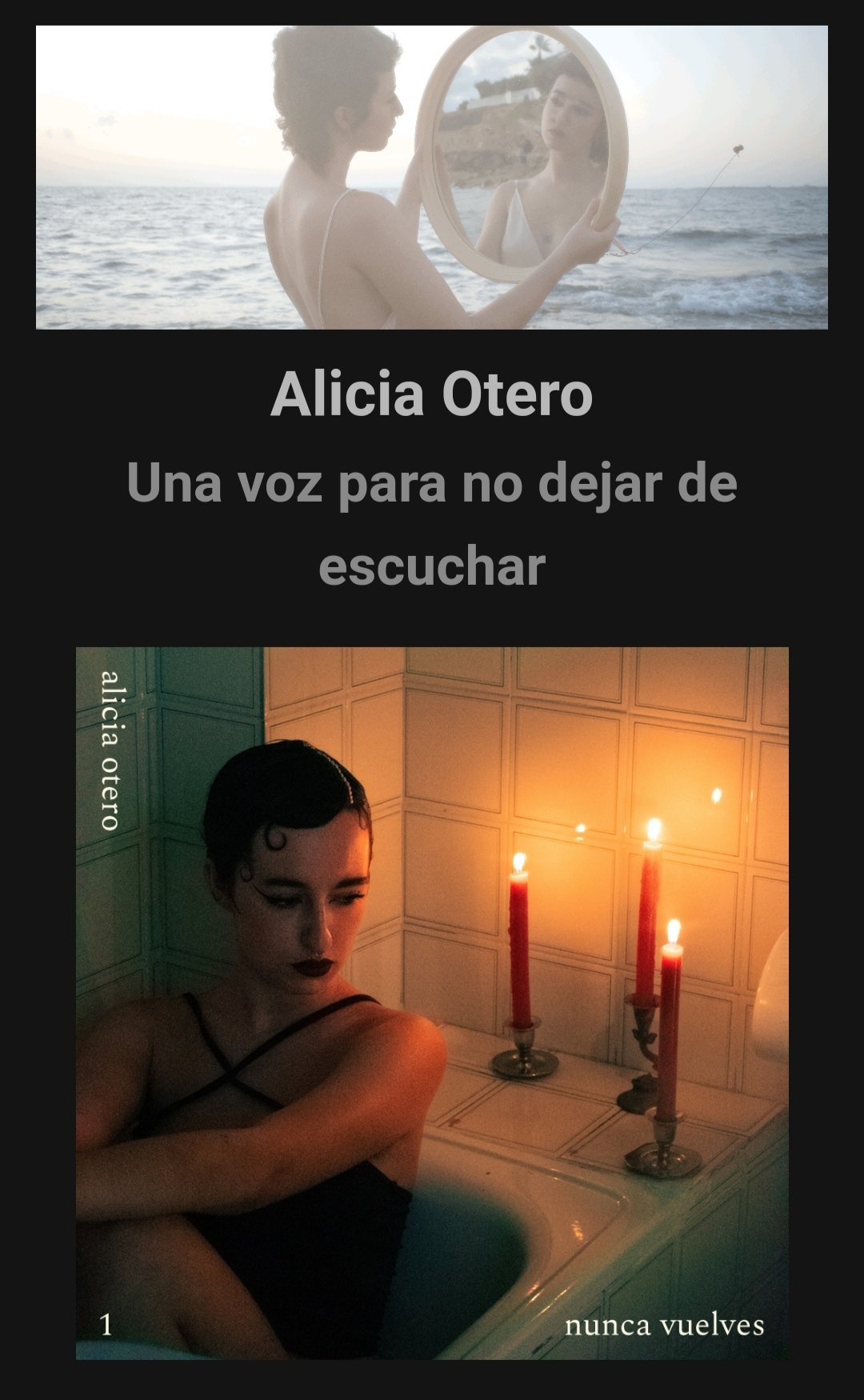 ¨Nunca vuelves¨, nace con un ritmo pausado para ir tomando temperatura según la avanza la canción, llevándonos en volandas con un ritmo entre el pop y el soul. En esta nueva pieza Alicia Otero nos habla de una historia de amor no acabada. De esos momentos que pasa una en la soledad de su habitación pensando en como serán los siguientes pasos sin la presencia de la persona querida. Una canción donde Alicia da un salto en la fuerza de sus composiciones llegando por momentos a recordarnos a la añorada Amy Winehouse.