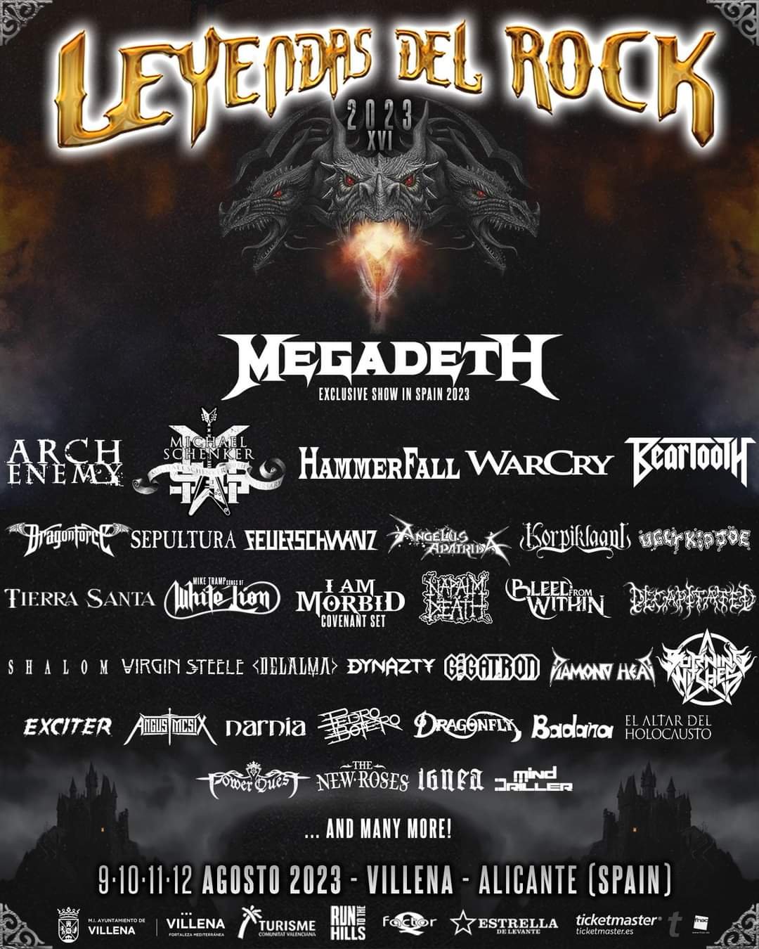 El 29 de agosto de 2022 la organización ha confirmado que Megadeth es el primer nombre confirmado para la edición de 2023. La legendaria banda de thrash metal estadounidense liderada por Dave Mustaine, miembro junto a Metallica, Slayer y Anthrax del Big Four made in USA, tendrá en Leyendas del Rock 2023 su única parada en España.