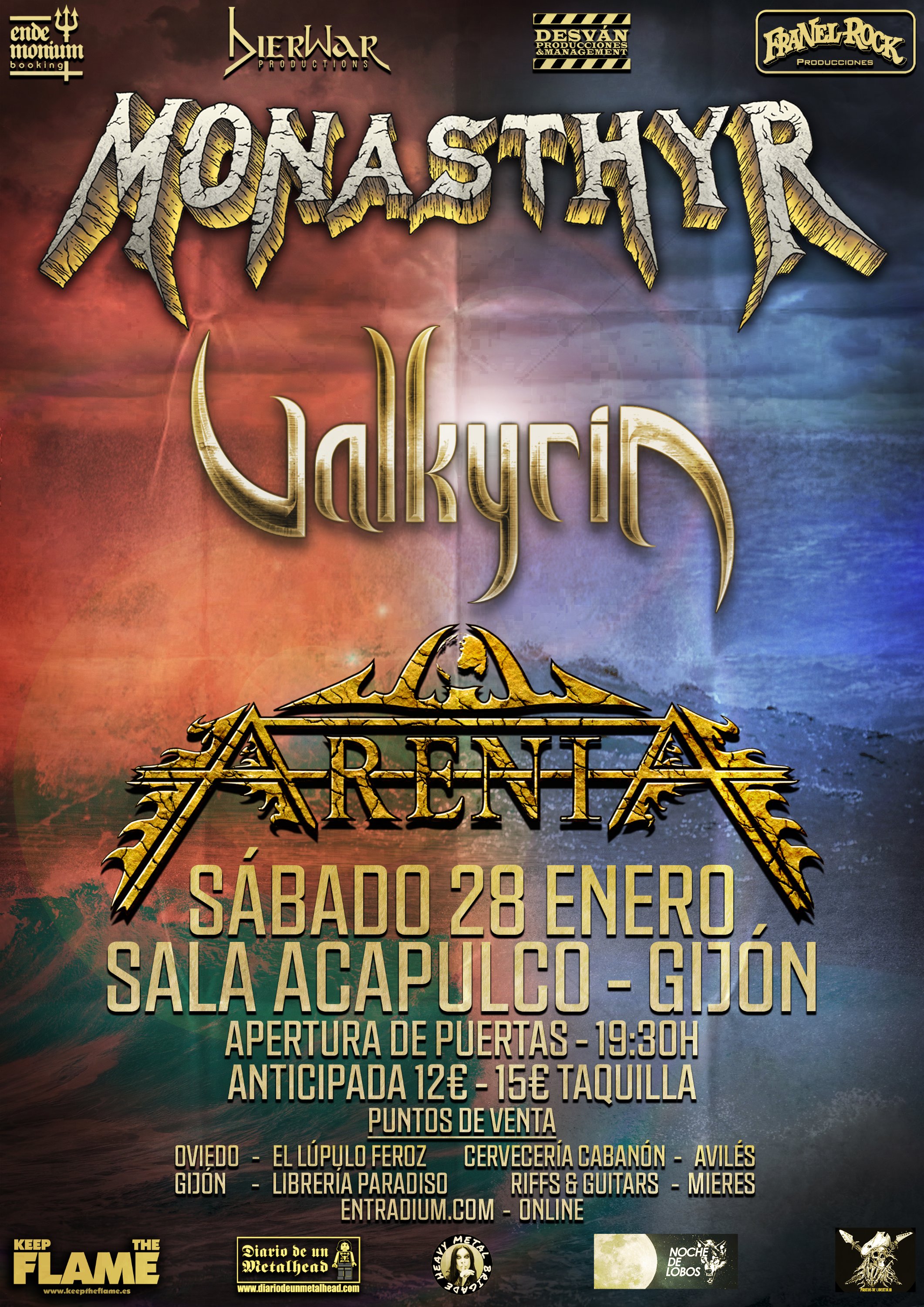 Las entradas anticipadas que tendrán un precio de 12€, se pueden adquirir en la cervecería El Lúpulo Feroz en Oviedo, la librería Paradiso en Gijón, la tienda Riffs and Guitars en Mieres y la cervecería Cabanón en Avilés o también online a través de este enlace: https://entradium.com/es/events/monasthyr-valkyria-arenia-sala-acapulco-gijon