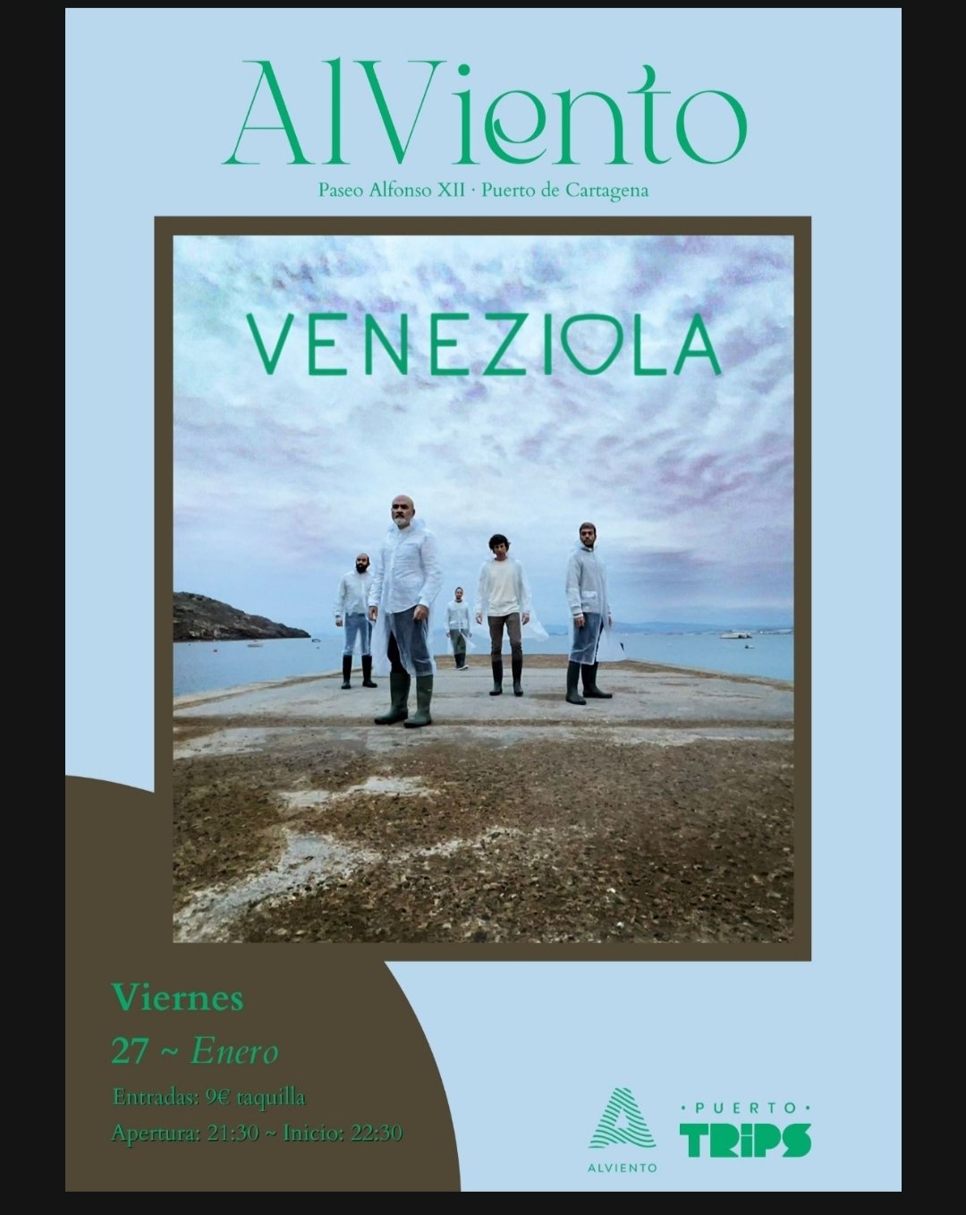 Veneziola estarán actuando este viernes 27 en Al Viento Puerto Trips (Pº Alfonso XII) del Puerto de Cartagena (Murcia) (mapa).