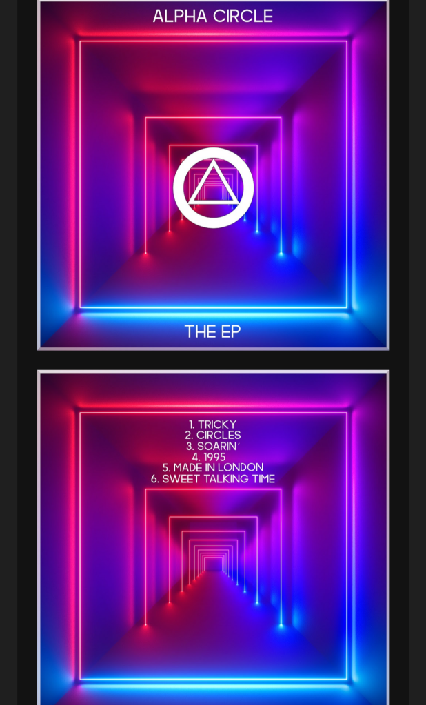 El EP de presentación de Alpha Circle recoge los seis singles que la banda ha grabado con el productor Iker Arranz, 5 de ellos ya habían sido publicados previamente : Circles, Soarin, 1995, Made in London y Sweet Talking Time y añaden ahora «TRICKY» su flamante nuevo single. Presentan su nuevo EP en directo el Sábado 28 a las 21:30 en la mítica sala madrileña el Perro de la Parte de Atrás del Coche