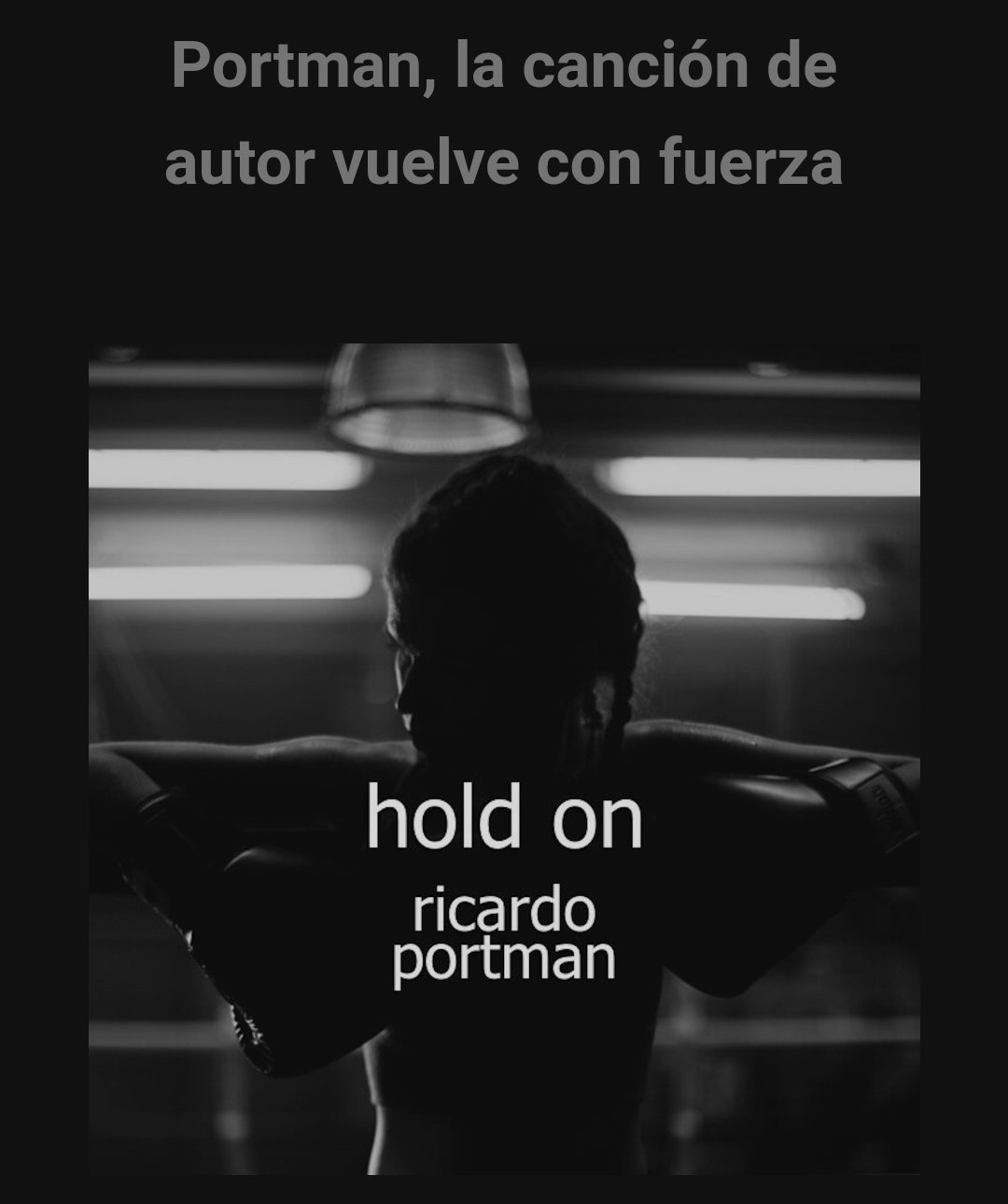 Hold On, con letra y música de Ricardo Portman, se grabó el pasado mes de octubre en Madrid, con su autor encargándose de las voces, guitarras acústicas, bajo y piano. El estreno viene acompañado de un video donde Portman intento buscar una imagen de contraste tratando de sobresalir en un mundo tan masculino como lo es el boxeo y el kickboxing, todo muy en linea con su idea de destacar la fuerza femenina.
