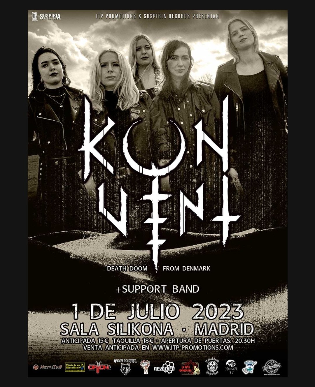 Por problemas con la distribución por días del Resurrection Fest, nos vemos obligados a cambiar la fecha de Konvent en Madrid. El concierto que tendría lugar el 30 de Junio pasa a ser el 1 de Julio (el día siguiente), en la Sala Silikona.