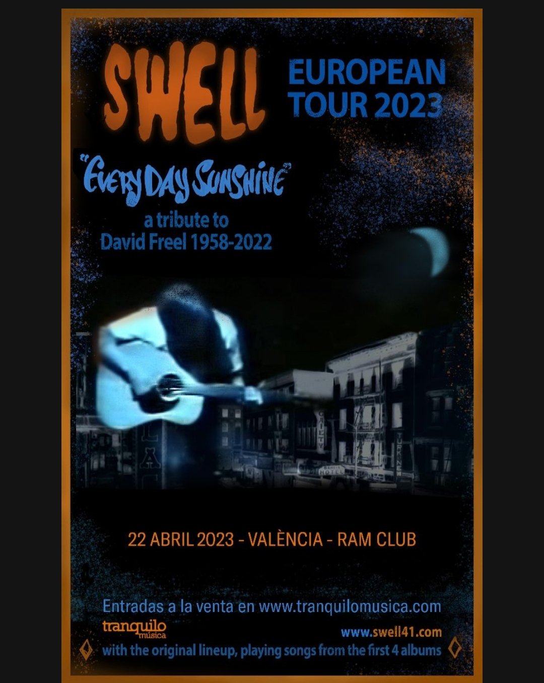 - Con esta gira, nombrada «Everyday Sunshine», Swell rinden homenaje a David Freel, vocalista y fundador de la banda, que falleció el pasado año