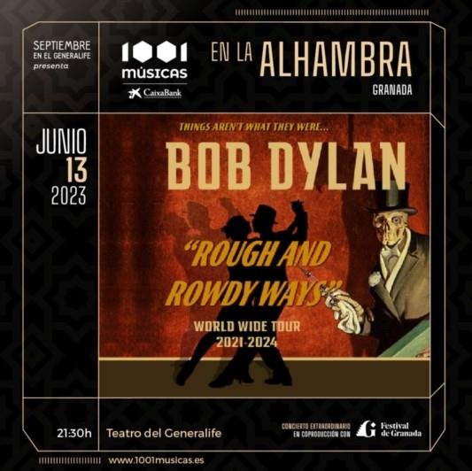 Las entradas del Concierto Extraordinario de Bob Dylan se podrán adquirir a través de bobdylan.com, granadafestival.org y www.1001musicas.es a partir del miércoles 15 de marzo a las 10:00hrs.